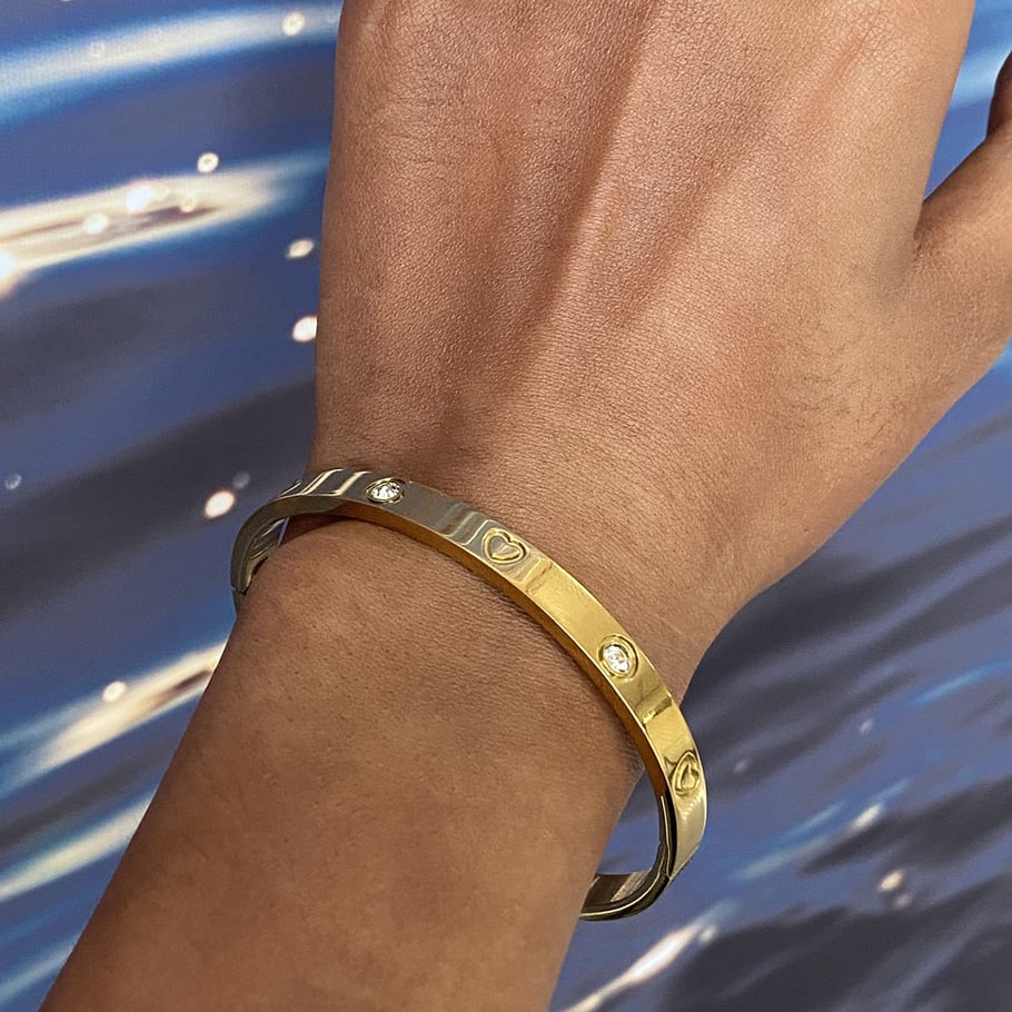 Der Heart Glow Armreif verzaubert mit funkelnden Steinchen und kleinen Herzdetails. Sein feines Design und die liebevollen Elemente machen ihn zu einem besonderen Accessoire – ideal als Geschenk oder als romantisches Highlight für dein Outfit. Dezent, elegant und vielseitig kombinierbar.