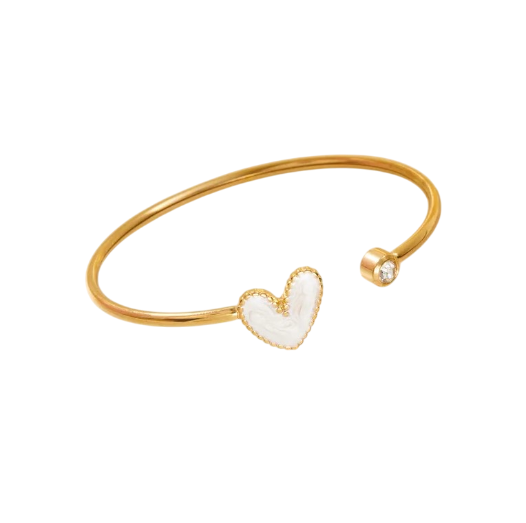 Der Snow Heart Armreif vereint Reinheit und Glanz – das weiße Herz in Kombination mit einem funkelnden Stein steht für schlichte Schönheit und zeitlosen Stil.