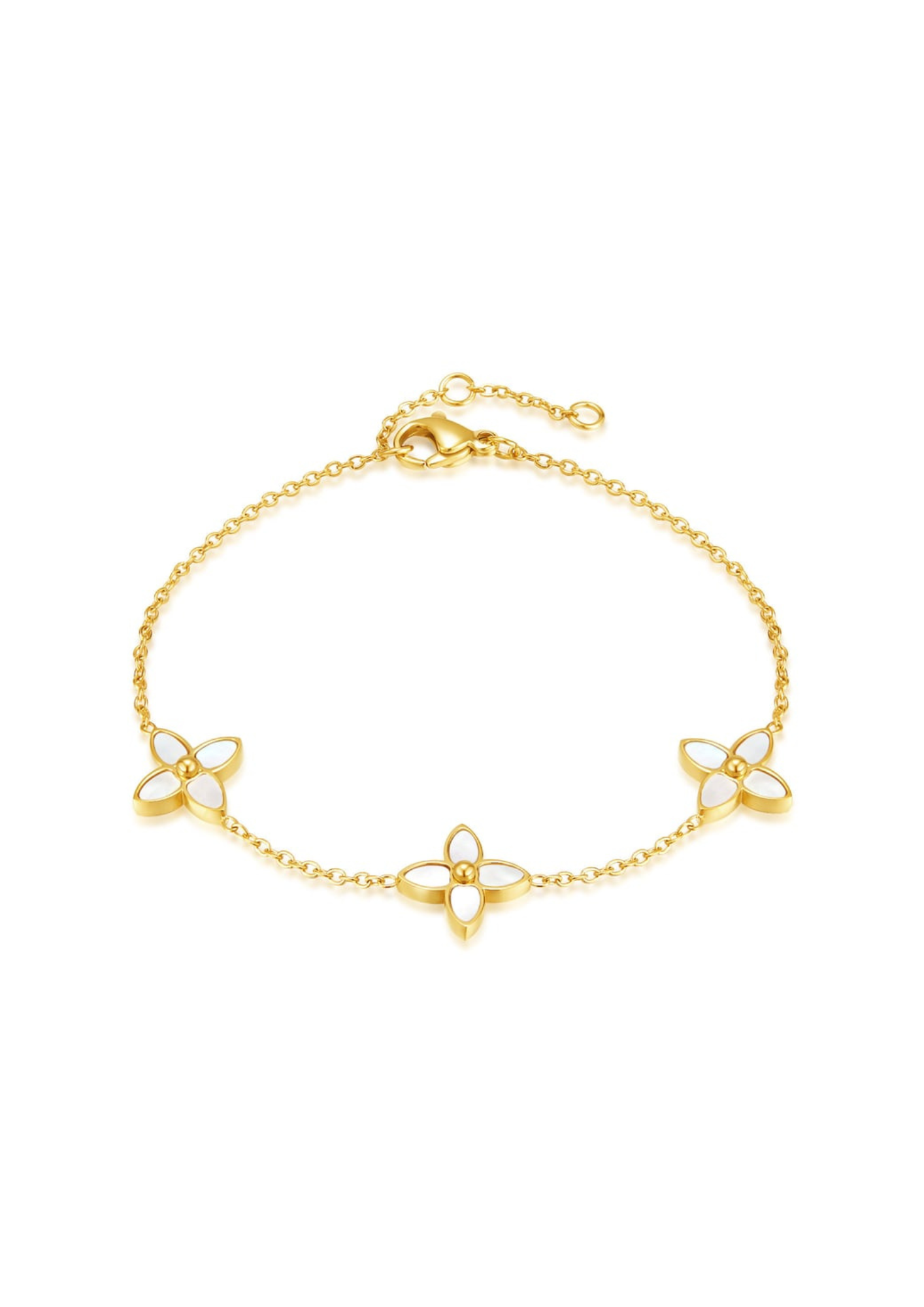 Das Fleur Essence Armband ist schlicht, modern und vielseitig kombinierbar. Die drei kleinen Blüten sorgen für einen feinen, aber stilvollen Hingucker. Ein ruhiges Schmuckstück, das zu vielen Outfits passt.