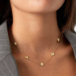 Die Flora Link Halskette vereint verspielte Romantik mit eleganter Leichtigkeit. Mehrere filigrane Blüten reihen sich harmonisch aneinander und verleihen der zarten Kette eine florale Raffinesse. Die fein gearbeiteten Blumelemente fangen das Licht sanft ein und setzen dezente, doch wirkungsvolle Akzente.