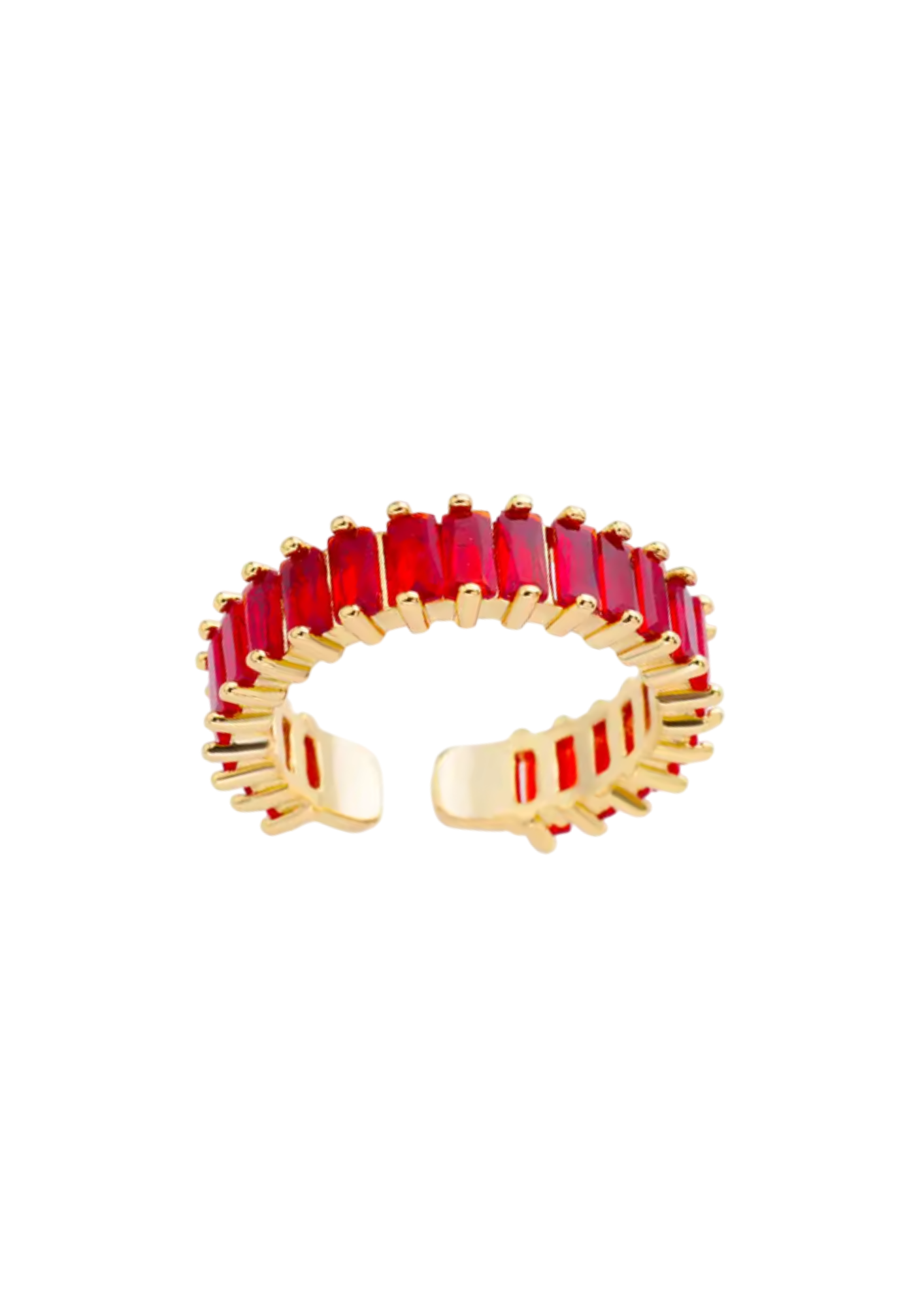 Der Red Glow Ring aus Edelstahl in goldfarbener Optik ist das perfekte Schmuckstück für jede Gelegenheit. Mit  funkelnden roten Zirkonia-Steinen, die in sanften Tönen schimmern, verleiht dieser Ring deinem Look eine elegante und femininen Note. Das verstellbare Design sorgt für eine perfekte Passform, sodass er an jeder Hand bequem getragen werden kann.