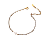 Das Aurora Shine Armband besticht durch seine funkelnden Zirkonia-Steine, die das Handgelenk mit einem strahlenden Glanz umspielen. In der Mitte zieht eine edle Perle alle Blicke auf sich und verleiht dem Armband eine dezente, feminine Note. Das filigrane Design schafft eine perfekte Balance aus zeitloser Eleganz und moderner Leichtigkeit.