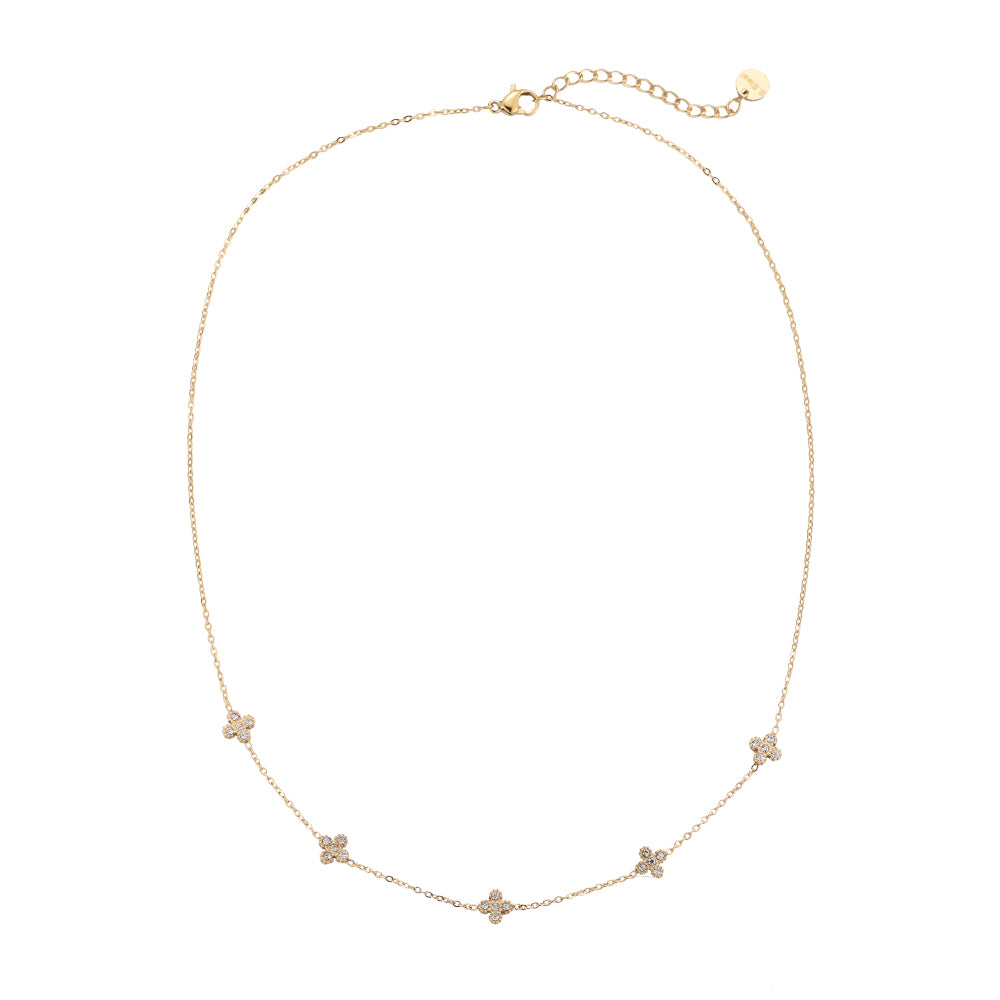 Die Floral Whisper Halskette bezaubert mit zarten Blümchenanhängern, die an die Schönheit der Natur erinnern. Ihr filigranes Design unterstreicht feminine Eleganz und verleiht jedem Look einen leichten, romantischen Akzent.