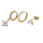 Das Triple Mix Ohrring-Set vereint drei elegante Designs in einem harmonischen Ensemble: einen schlichten Stecker, einen runden Ohrring und einen zarten Hänger. Die Kombination aus Formen und Stilen bietet vielseitige Tragemöglichkeiten – perfekt, um jeden Look individuell und stilvoll zu gestalten.