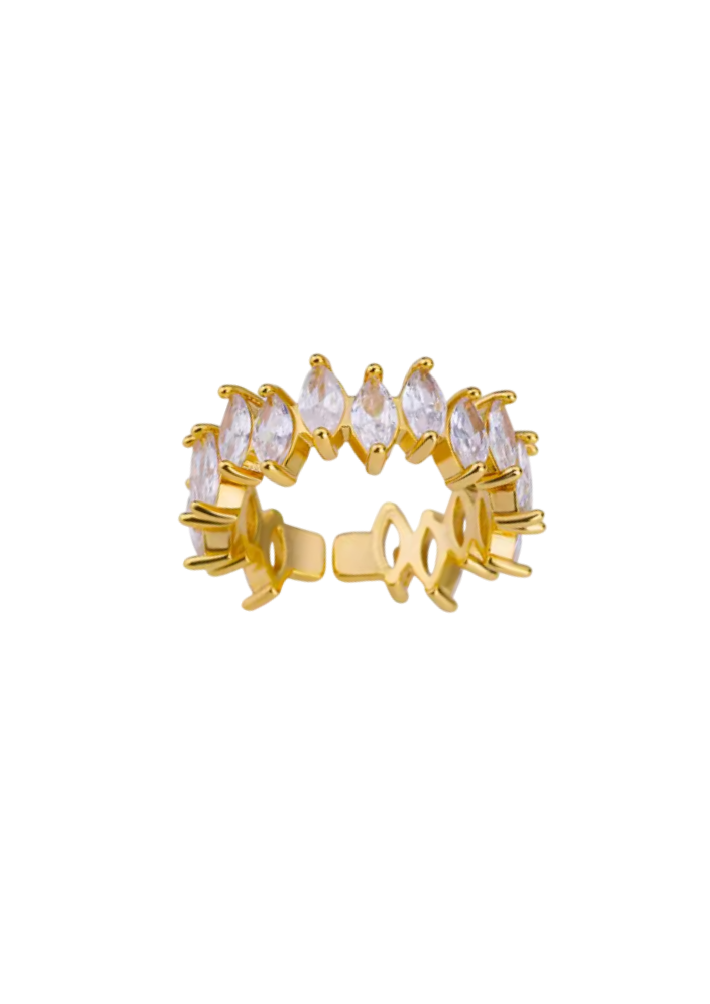 Der Crystal Glow Ring ist der Inbegriff zeitloser Eleganz. Verziert mit funkelnden Zirkonia-Steinen, bietet dieser Ring eine perfekte Kombination aus schlichtem Design und luxuriösem Glanz. Dank seiner verstellbaren Größe passt er sich individuell an und wird zu einem bequemen Accessoire für jeden Tag oder besondere Anlässe.